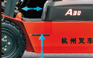 采用長(zhǎng)軸距設(shè)計(jì)使整車(chē)的縱向穩(wěn)定性更好,相同起升高度起重量平均較原有叉車(chē)有很大的提高,同時(shí)減小后橋負(fù)荷,延長(zhǎng)了轉(zhuǎn)向輪胎的壽命。 護(hù)頂架后腿加粗提高了護(hù)頂架的安全性能,確保操作員安全。 標(biāo)準(zhǔn)車(chē)配置機(jī)罩安全鎖扣,保證了操作人員的安全。 |